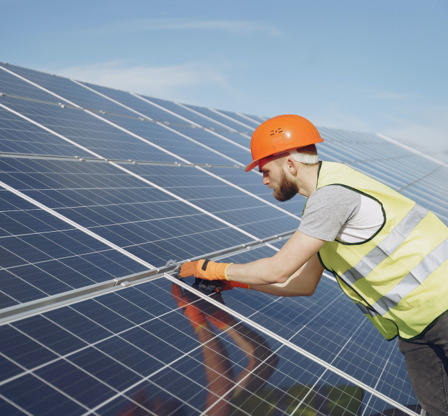 Photovoltaic installations for industrial customers in various fields, that require efficient, constantly available, and sustainable new sources of energy for their business consumption. These installations can be built on different surfaces (roofs of various types, land, etc.) under specific industry related regulations and conditions.